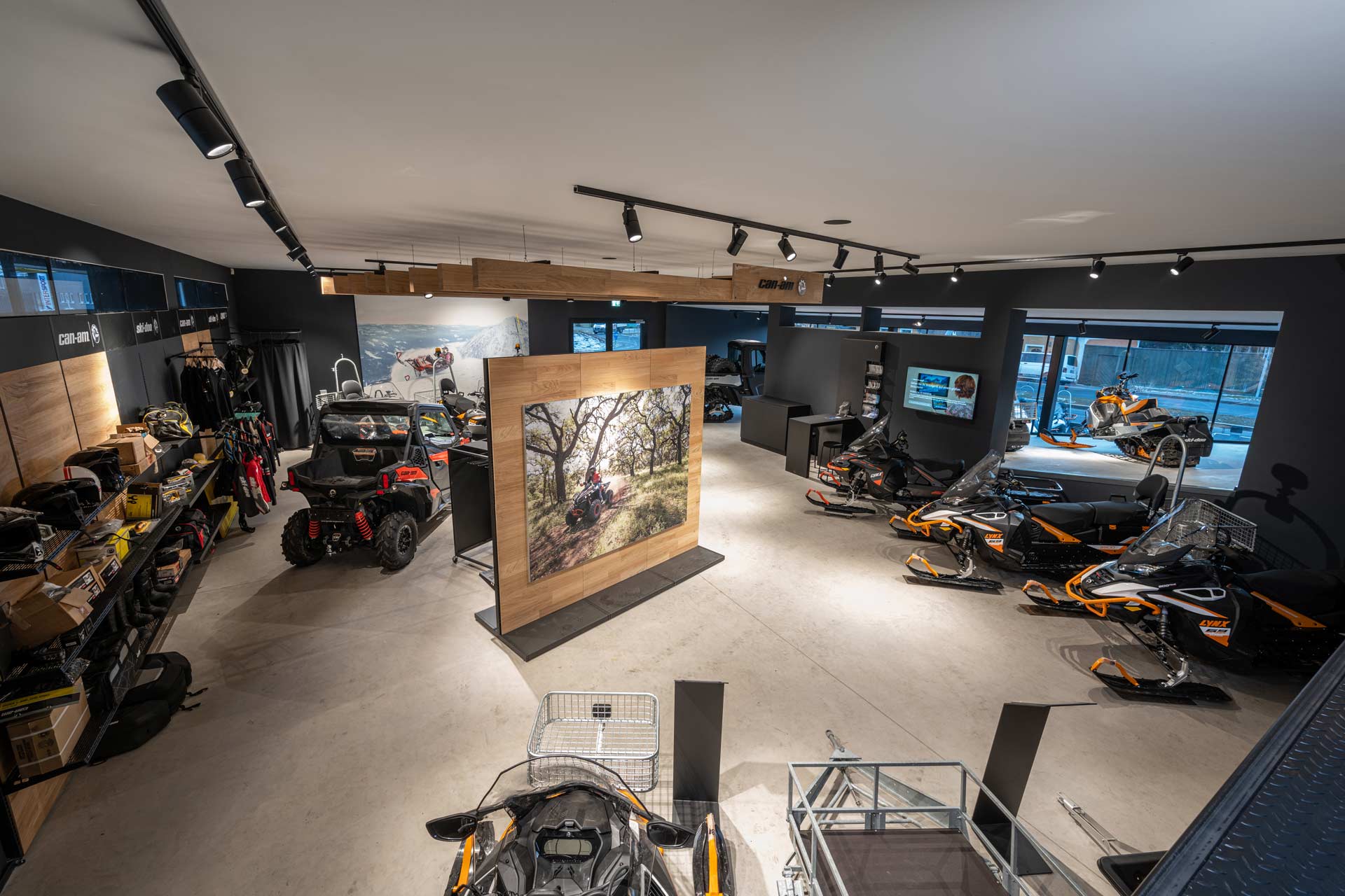 In unserem Betrieb bieten wir Ihnen einen großflächigen Ausstellungsbereich mit einer übersichtlichen Präsentation unserer Produkte welche von Skidoo, ATV Quads über Go Karts bis hin zu Trampolins reichen.